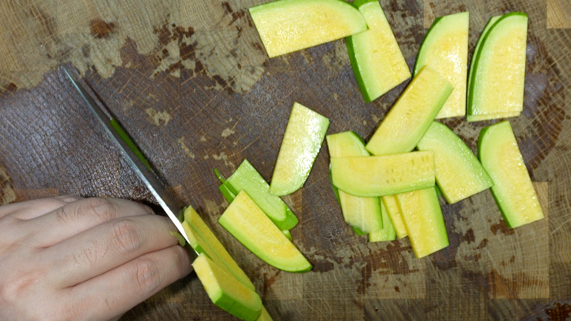 13) 애호박을 넣는다