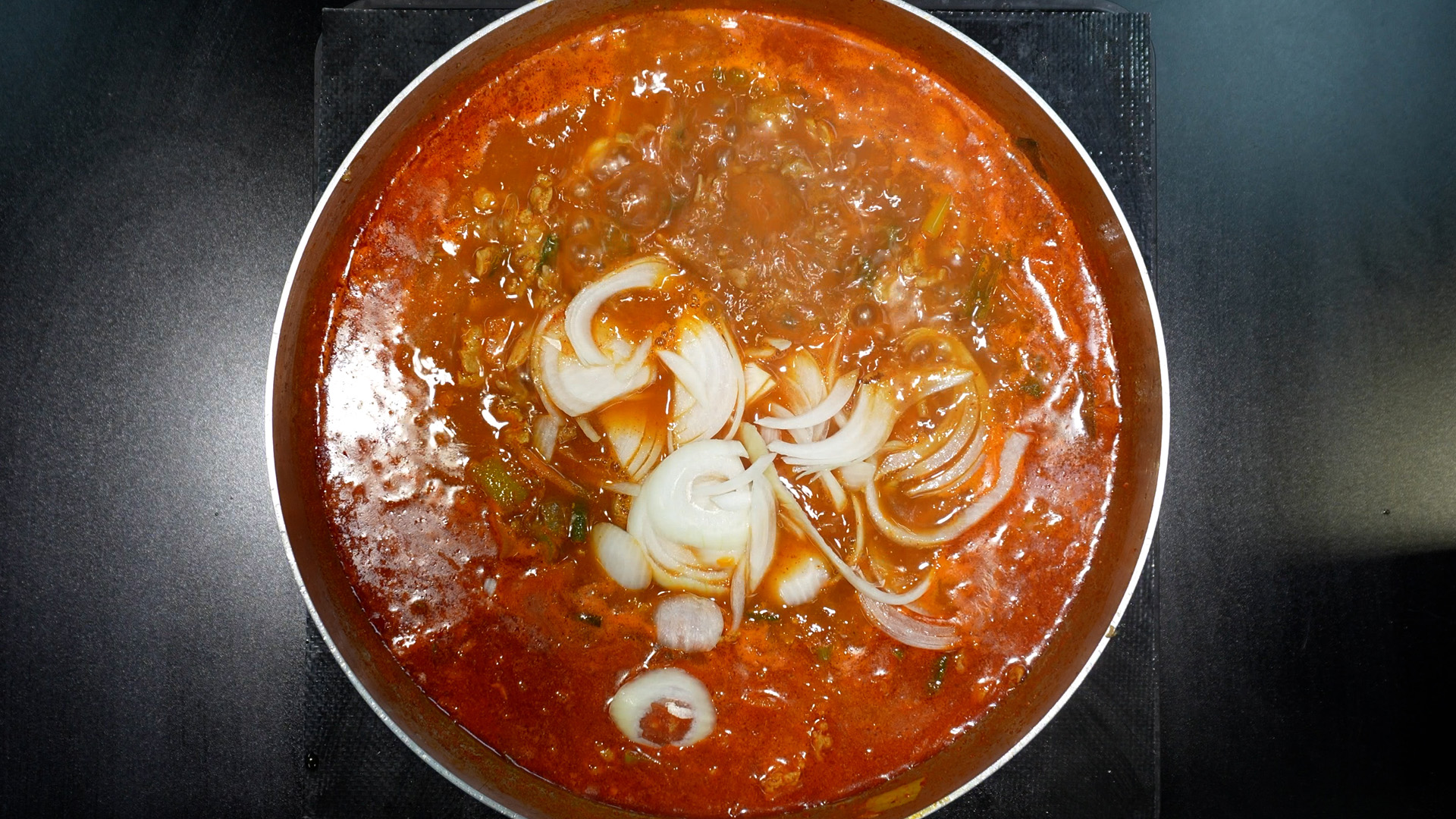 15) 채썬 양파를 넣는다