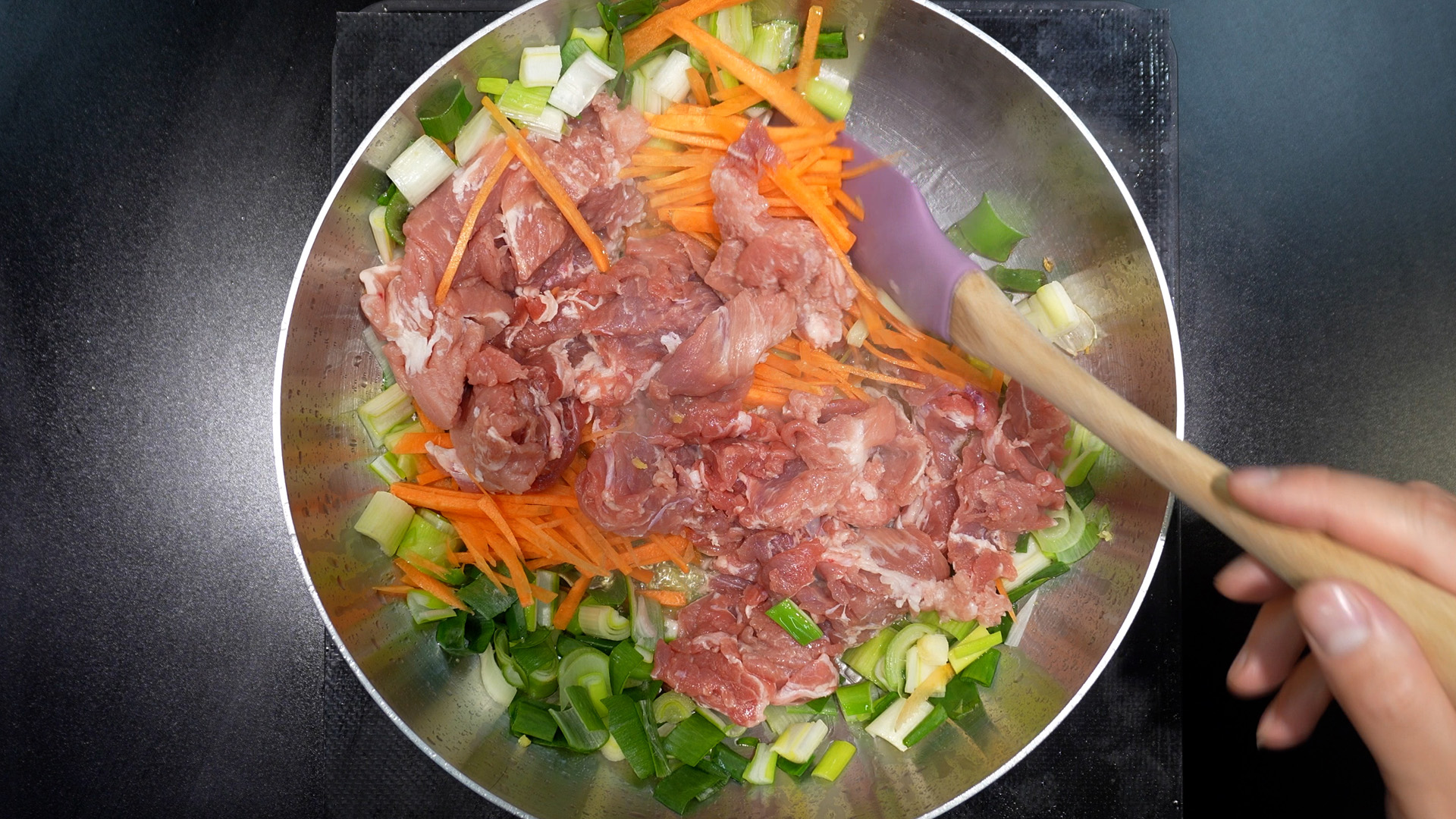 6) 고기가 익을 때까지 볶는다