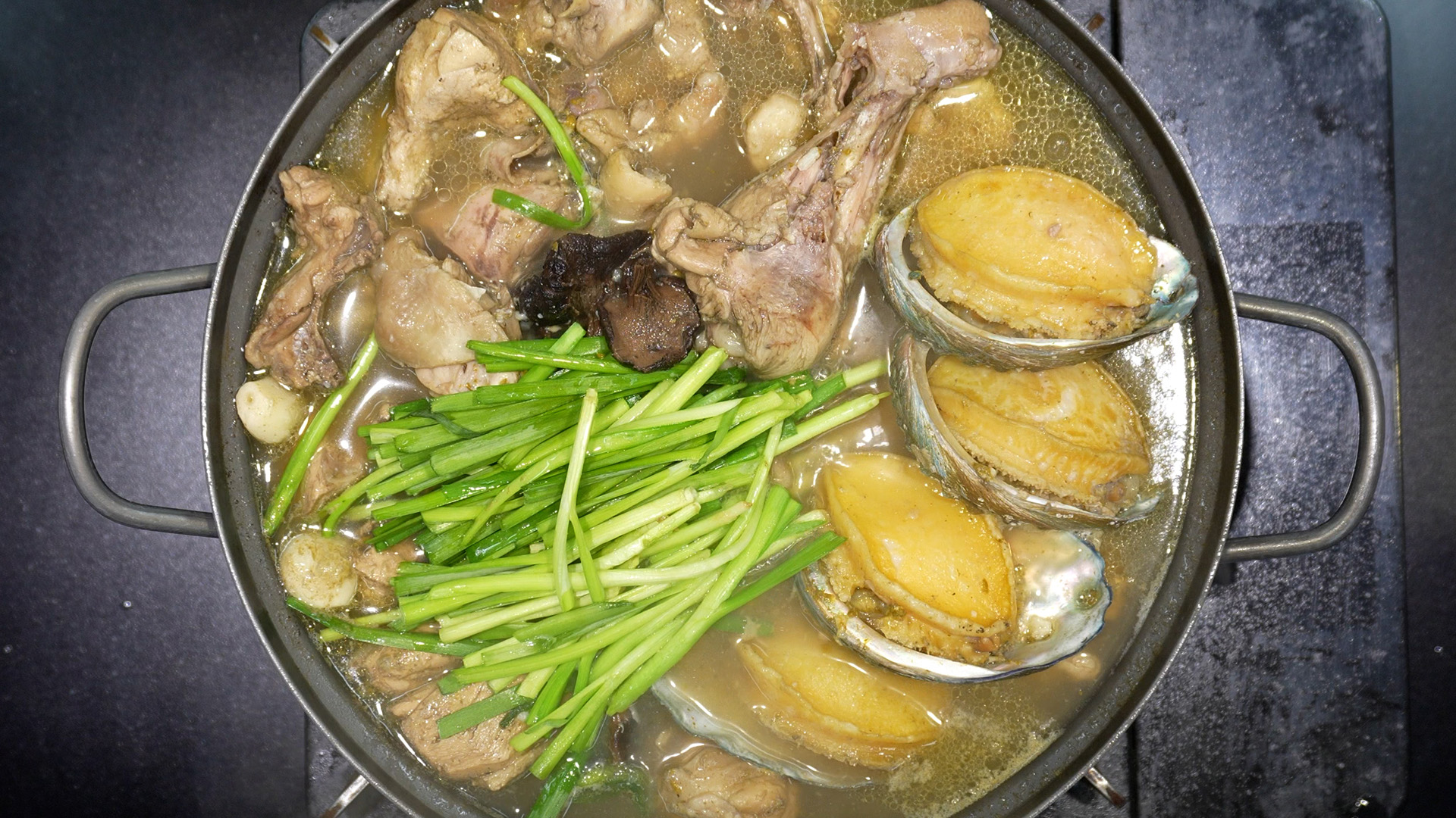 17) 전복을 올리고 딱 5분만 더 끓인다.