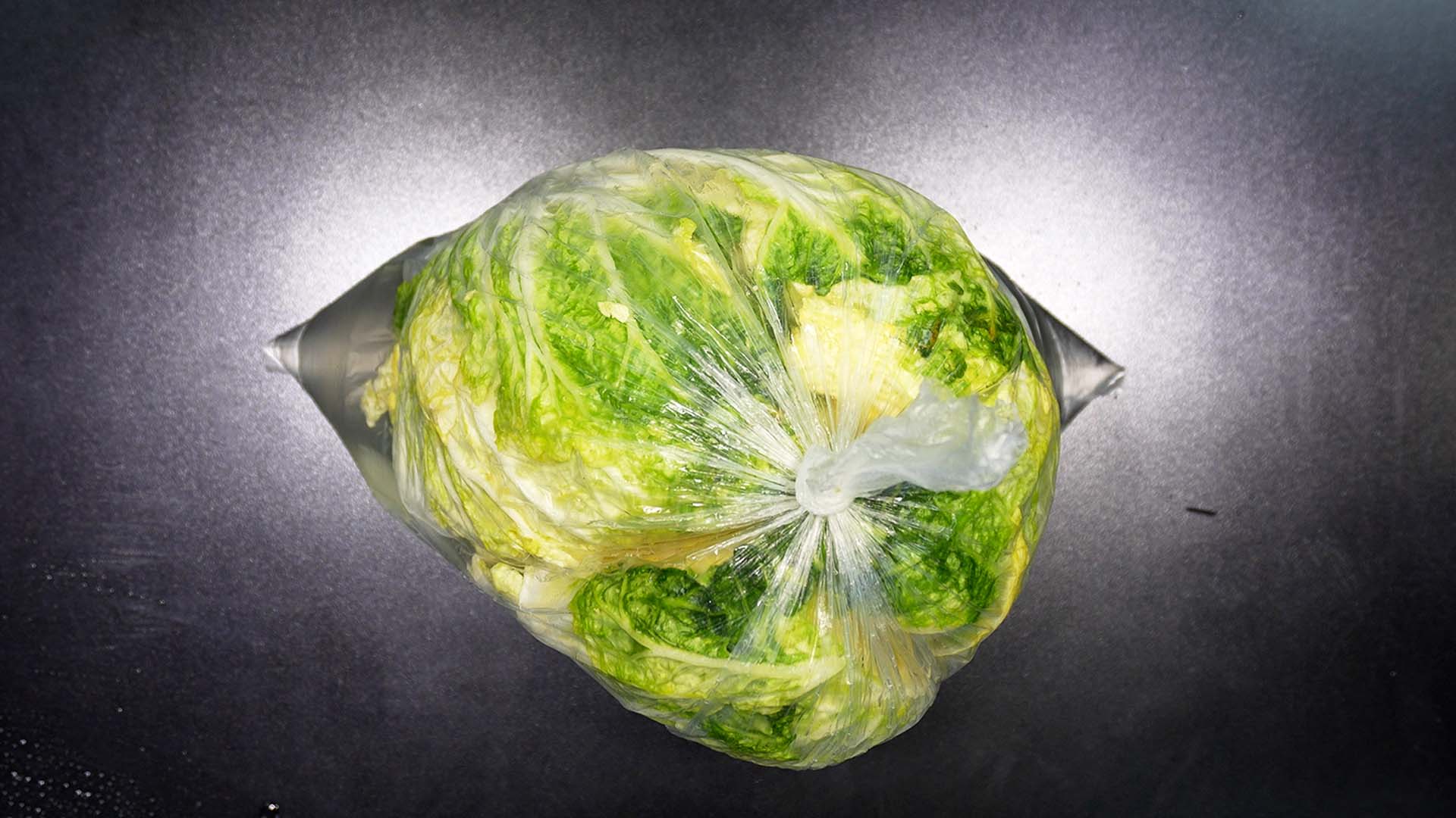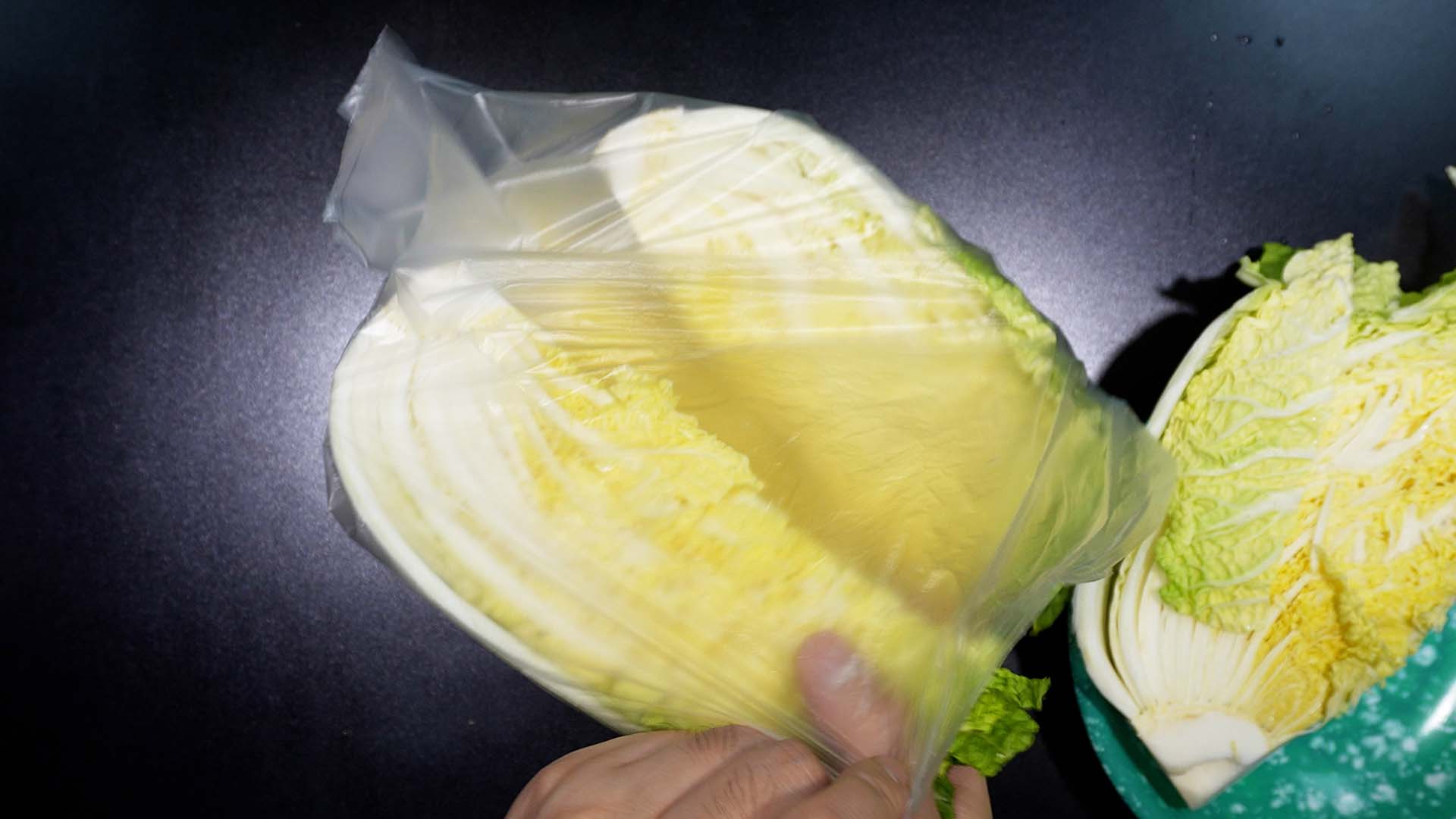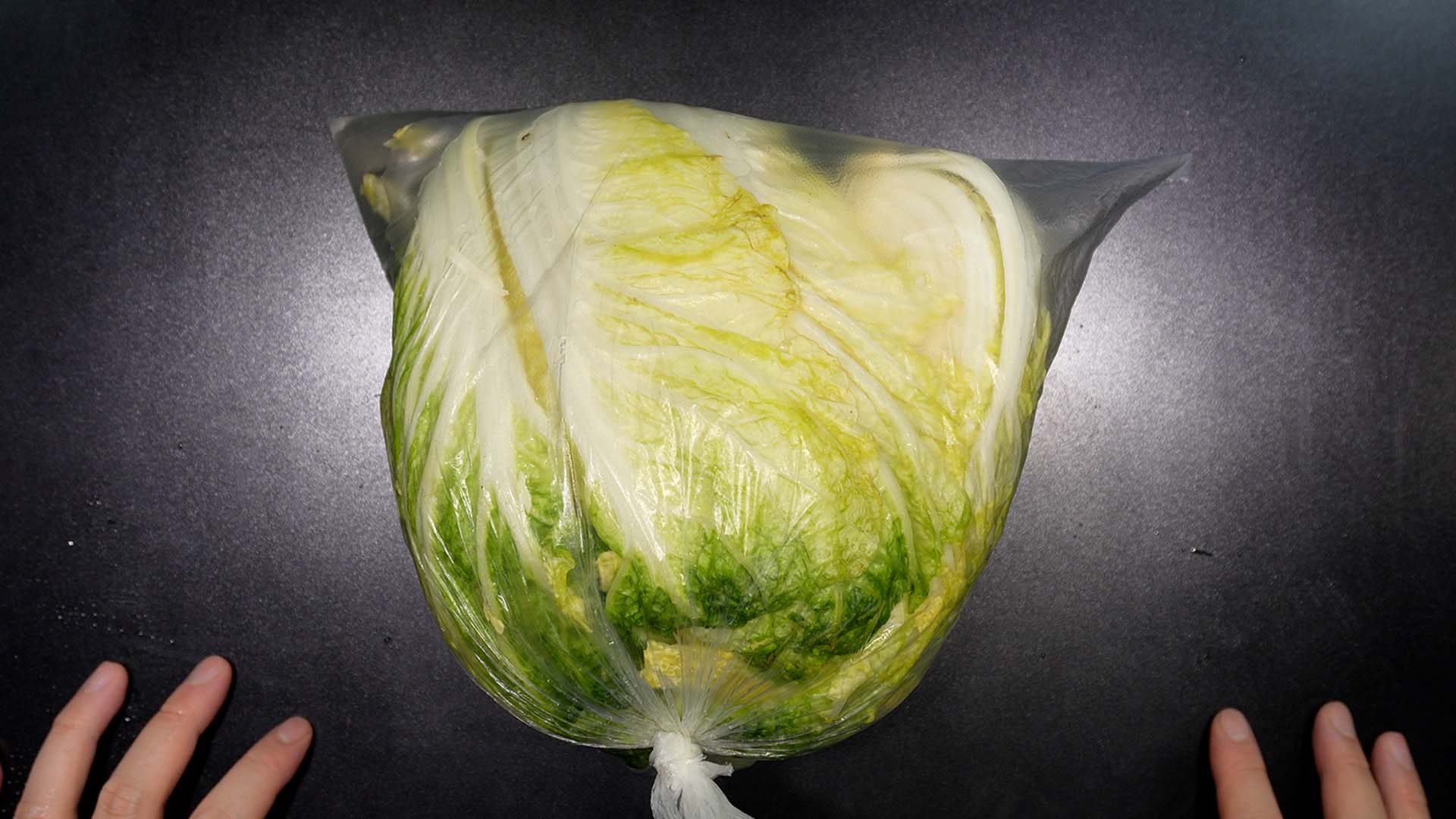 2) 자른배추를 비닐봉투 안에 넣어준다