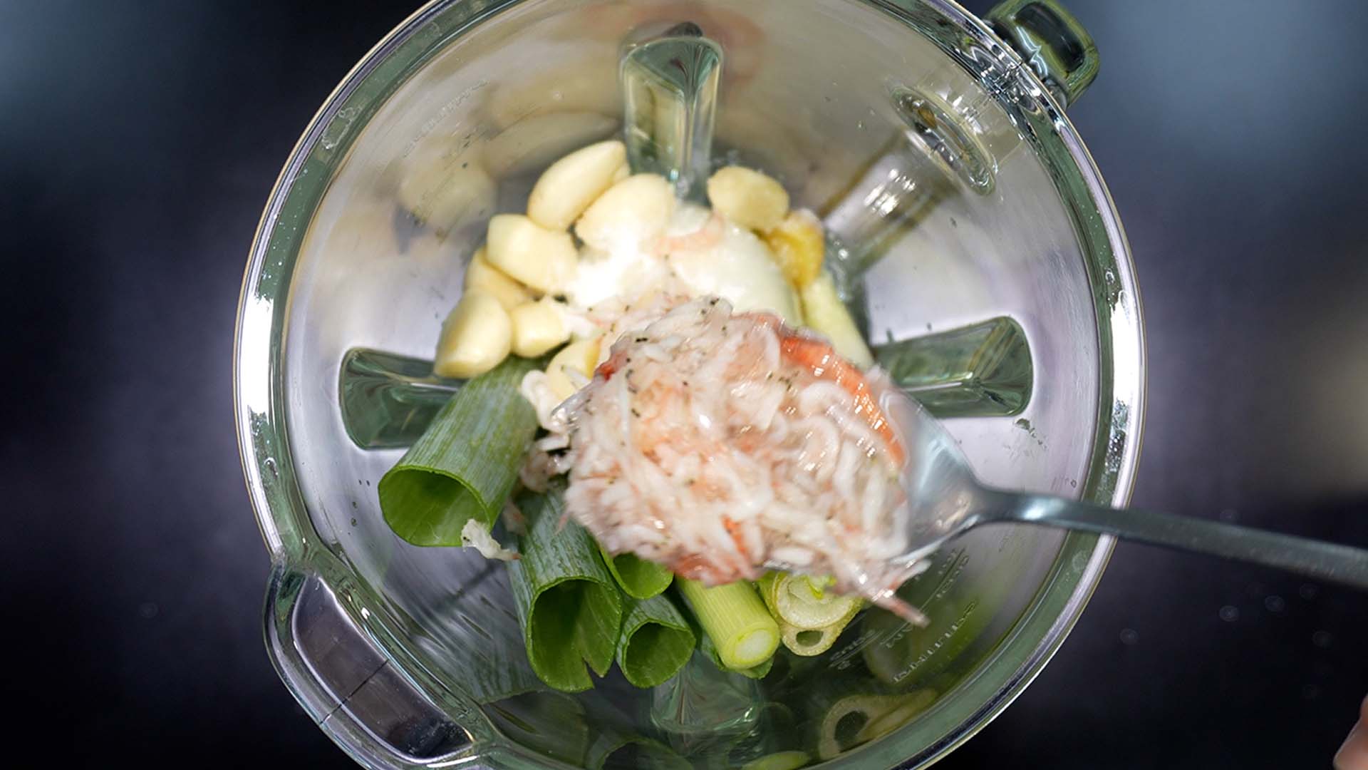 9) 믹서기에 새우젓을 넣어준다
