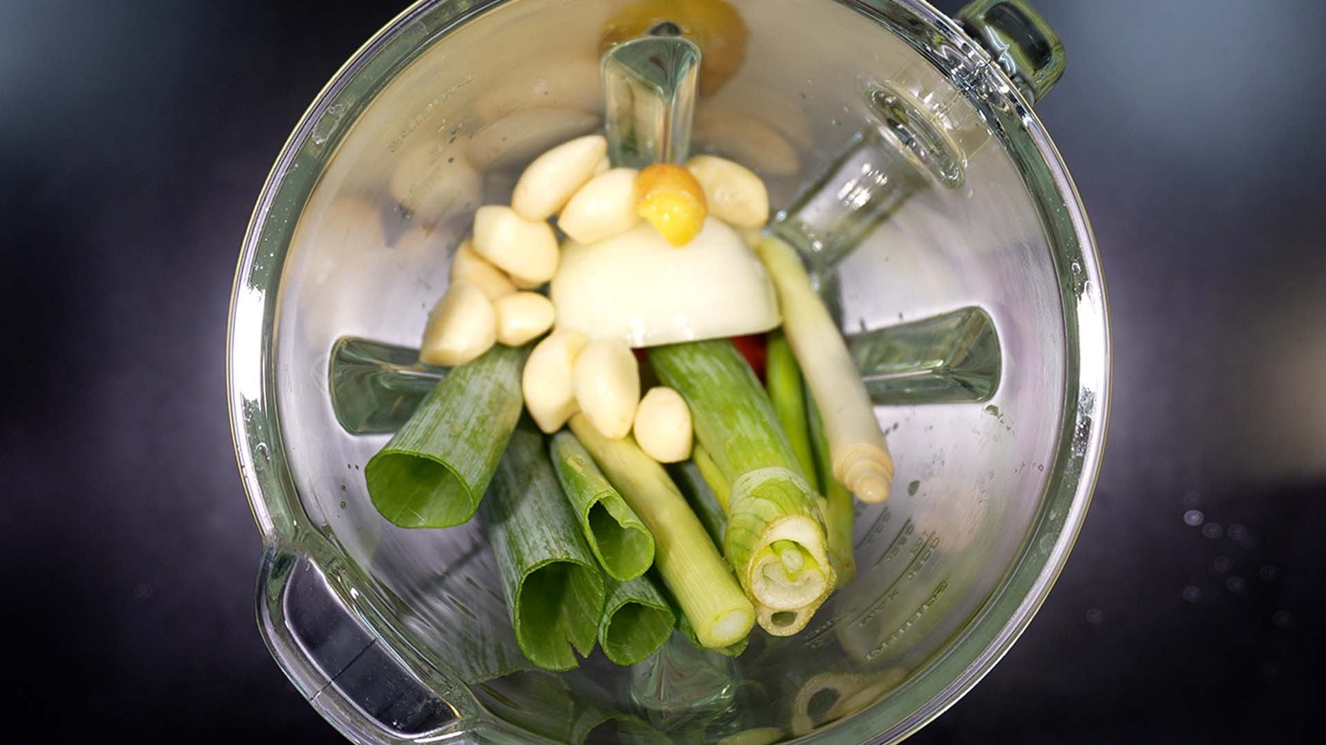 4) 믹서기에 대파를 넣어준다