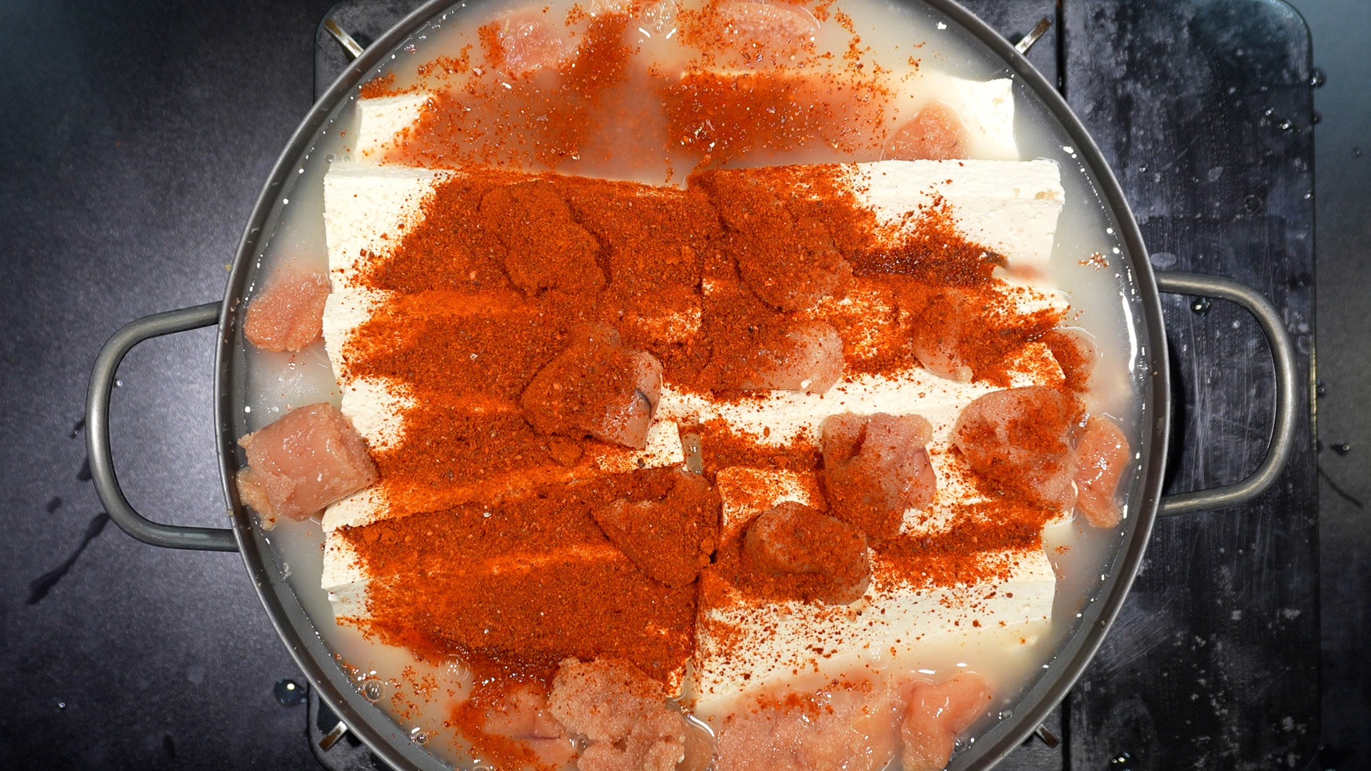 8) 고춧가루를 넣는다.