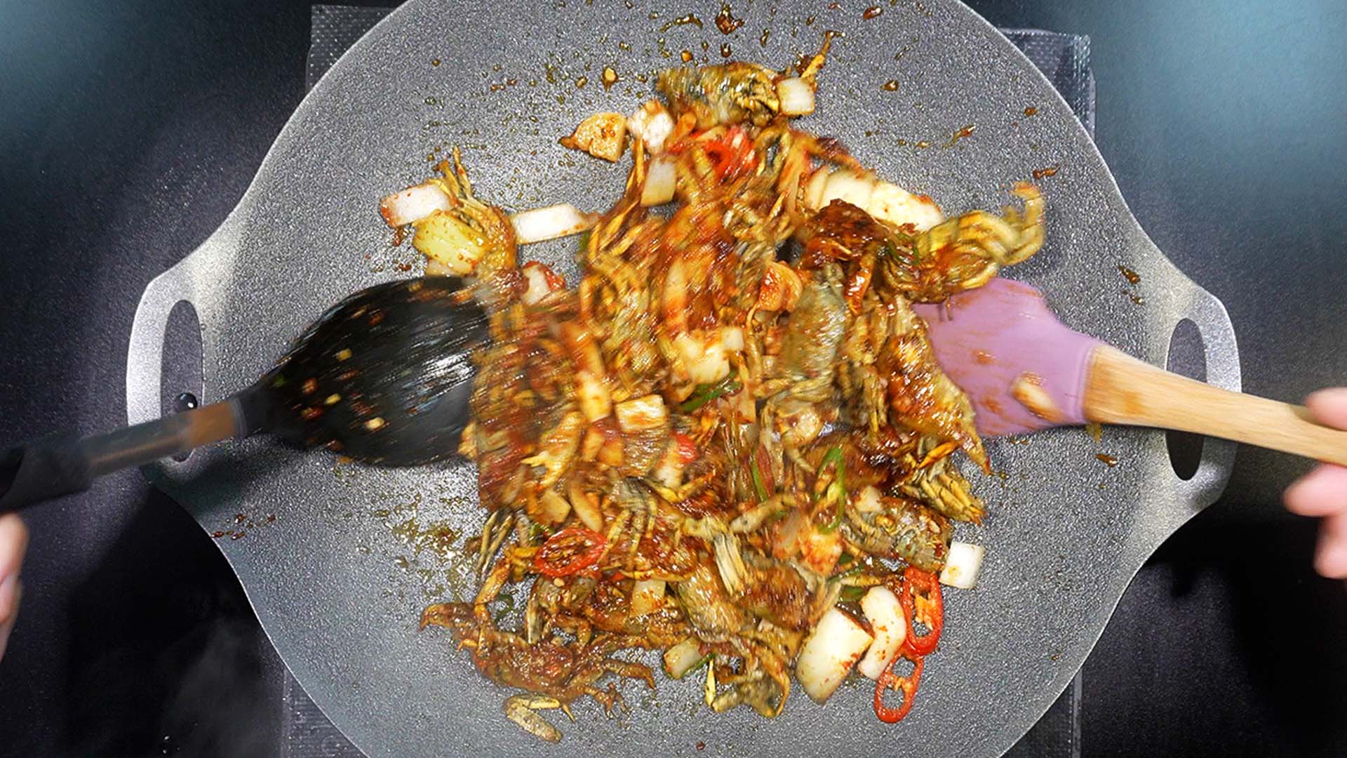 2. 칠게 볶음을 만든다