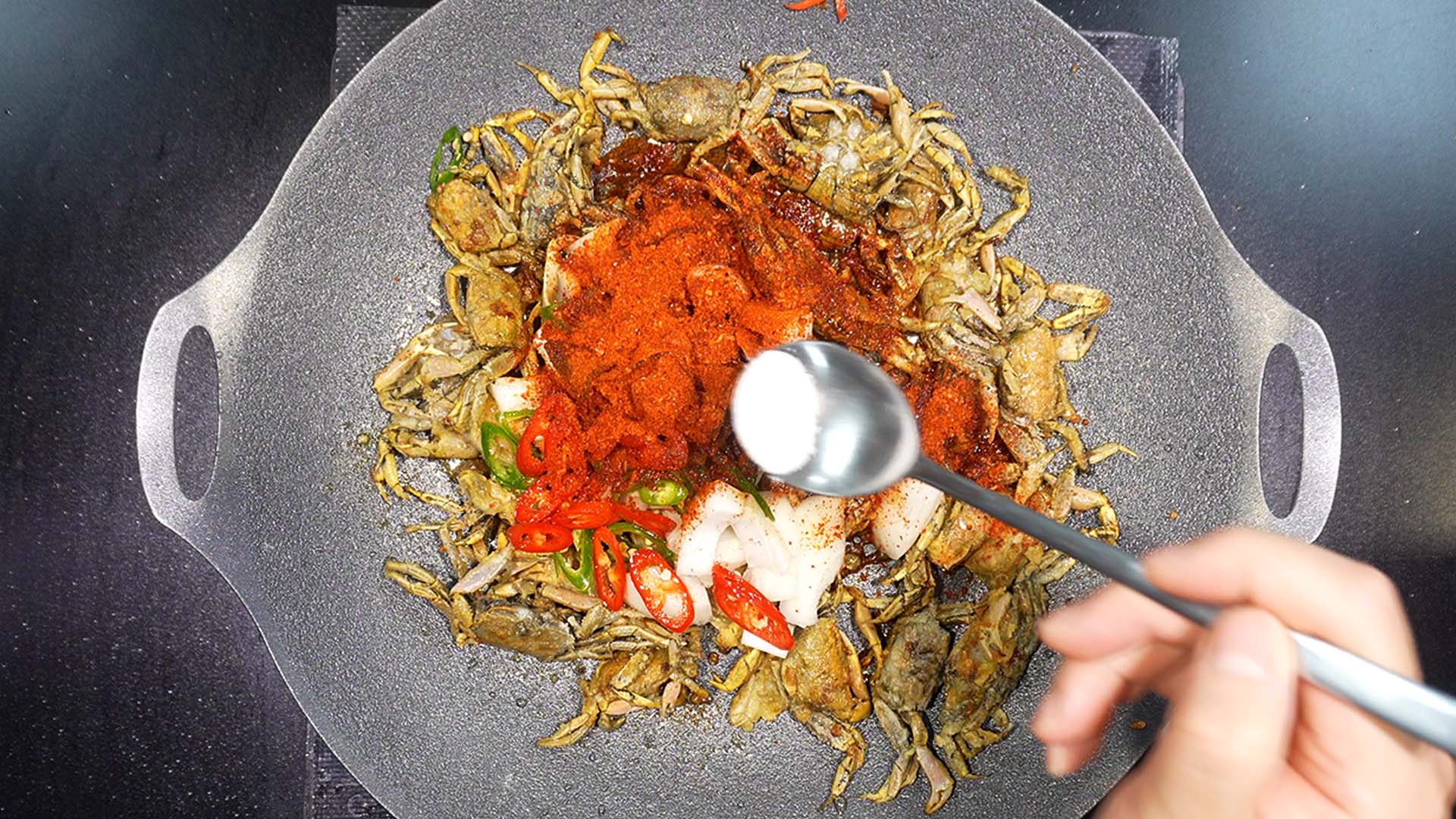 11) 고춧가루를 넣어준다