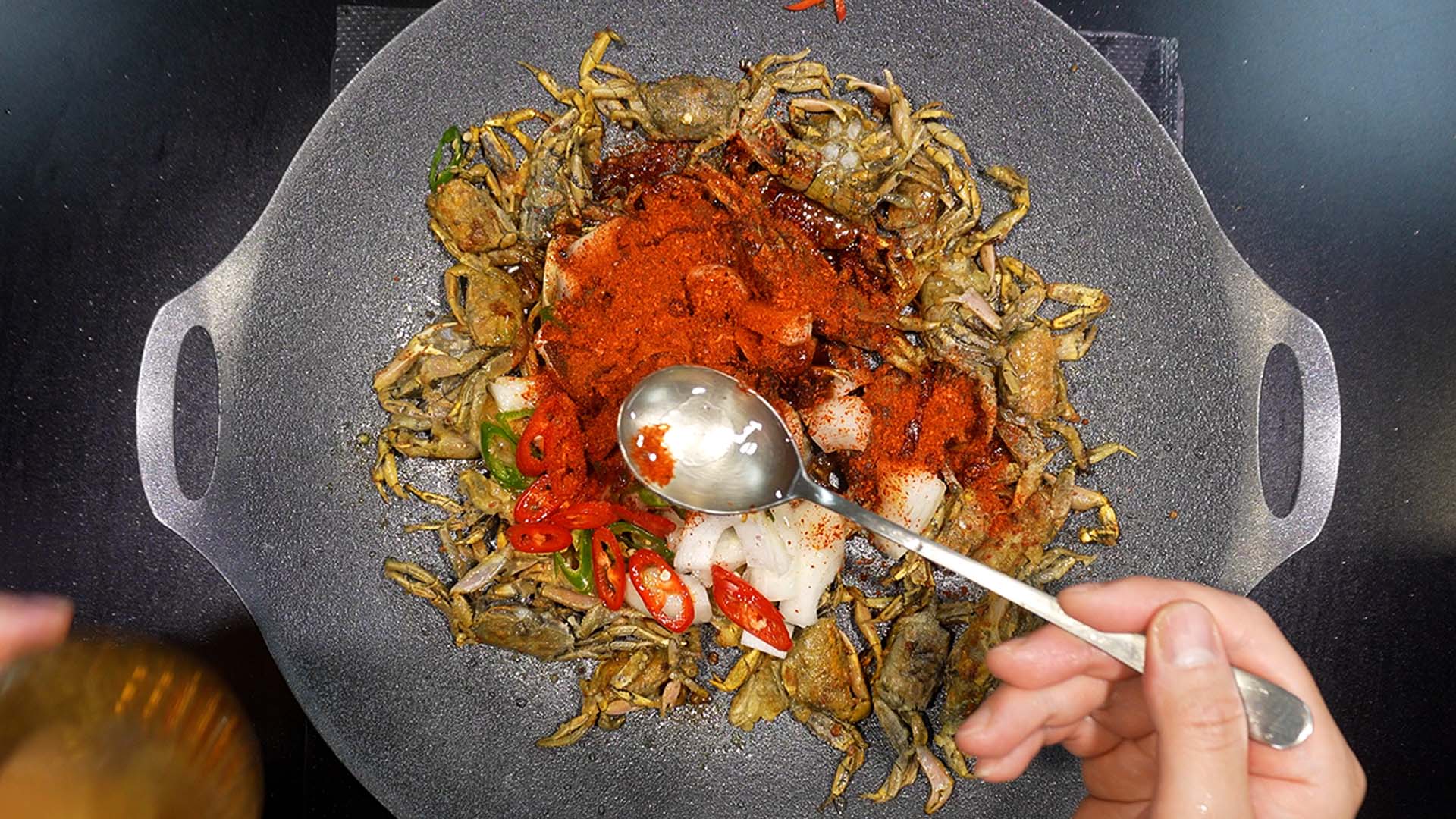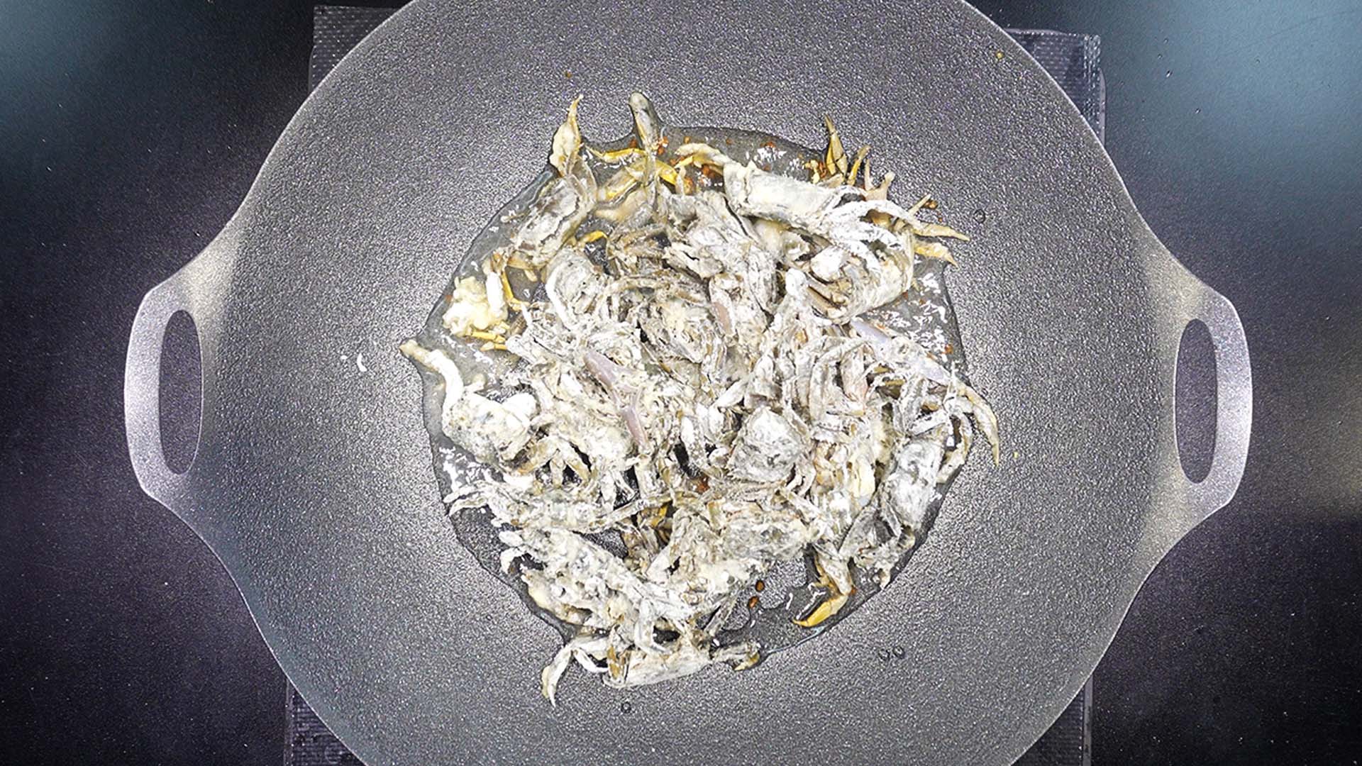 5) 칠게를 넣고 겉면이 빠삭빠삭해질 때까지 볶아준다