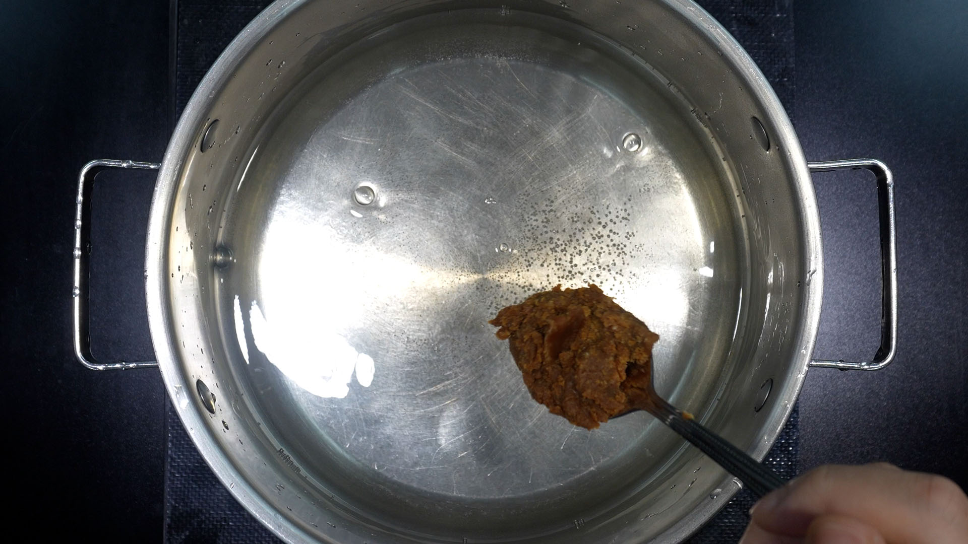 3) 된장을 넣는다.
