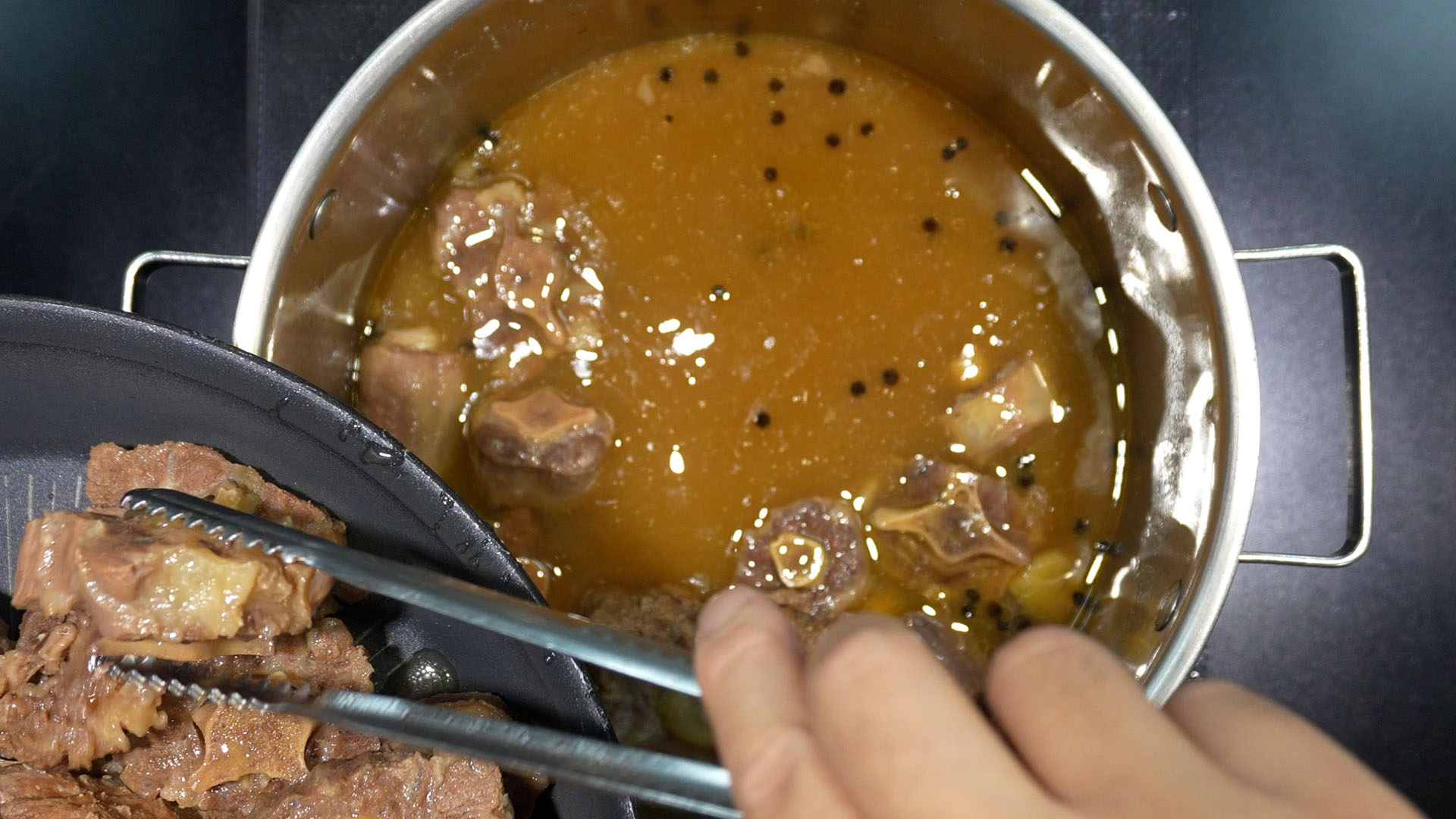 9) 1시간 30분 뒤, 냄비에 소꼬리를 모두 건진다.