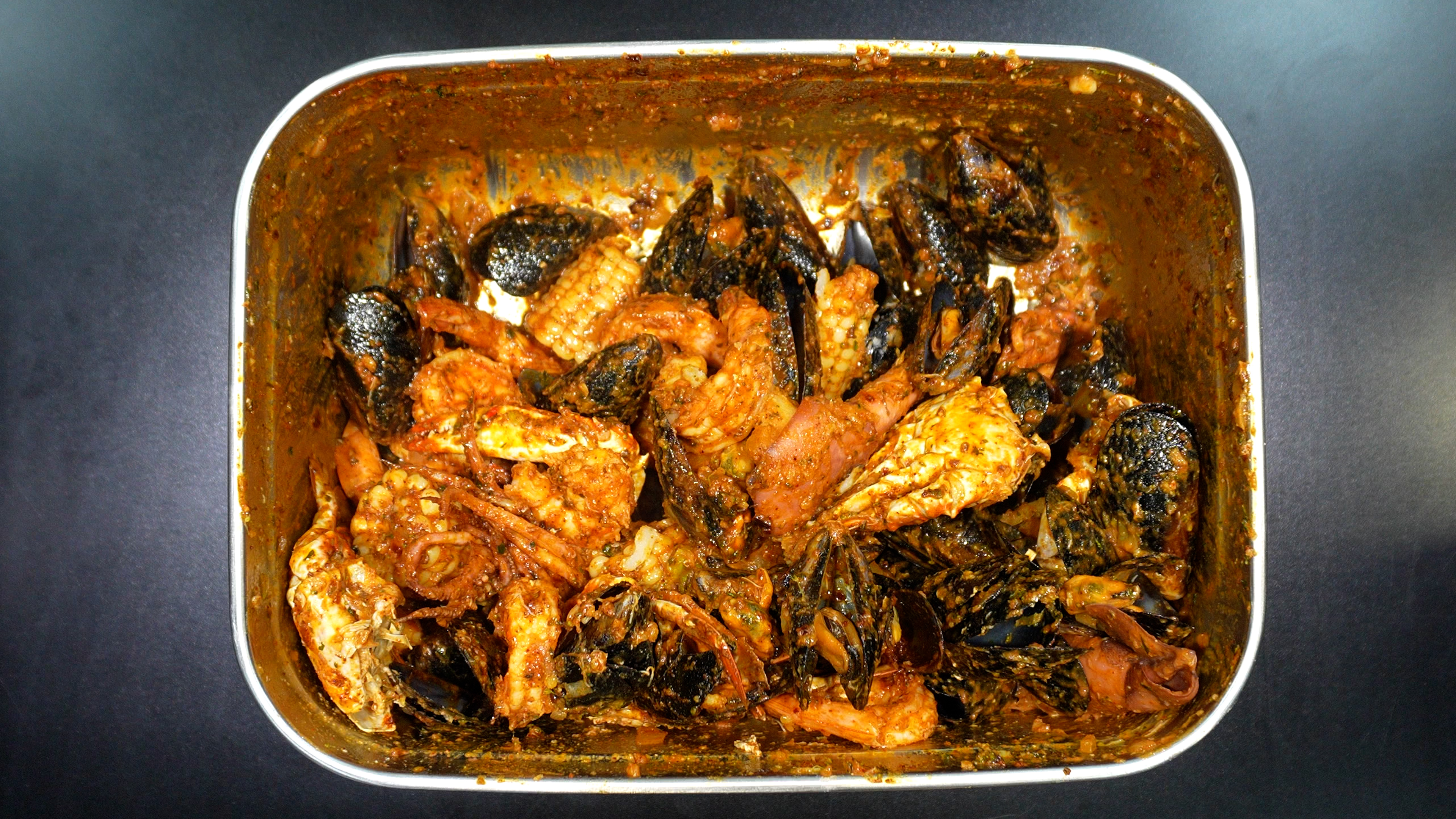 > 토마토 소스의 산미가 느끼함 (버터 베이스인 보일링씨푸드)을 잡아주면서 감칠맛을 끌어 올린다.