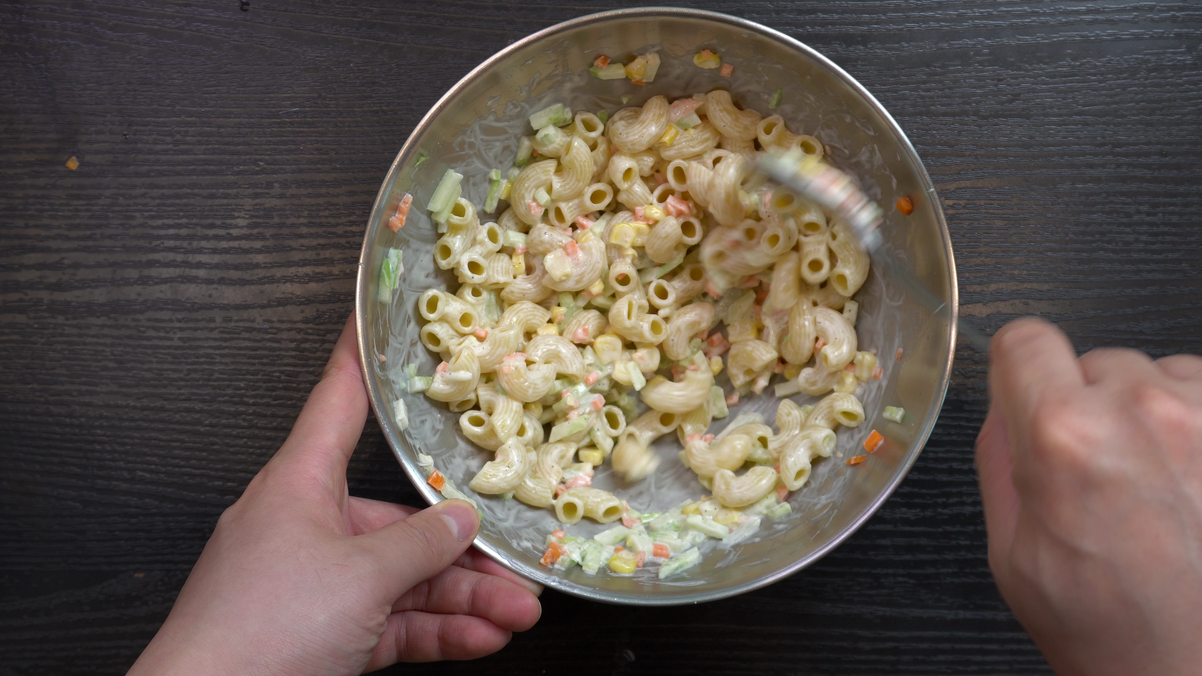 5. 볼에 아래의 재료를 넣고 섞어서 마카로니 샐러드를 만든다.